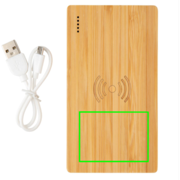 Looduslikust ja jätkusuutlikust bambusest valmistatud ökonoomne 4000 mAh akupank. Toetab 5 W juhtmevaba laadimist ja laadimist USB-pordi kaudu kaabli abil. Täielikult laetuna annab see teile piisavalt energiat mobiiltelefoni kuni kaks korda laadimiseks. Akupank sisaldab kauakestvat A-klassi 4000 mAh suure tihedusega liitiumpolümeerakut. Toiteindikaatorid näitavad järelejäänud energiataset, nii et teate alati, millal laadida. Sisend 5V/2A. USB väljund 5V/2A. Juhtmeta väljund 5W 5V/1A.